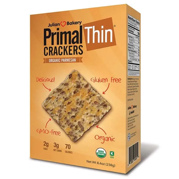 You know what would pair great with these delicious crunchy organic, low carb, gluten-free, grain-free, primal crackers? You guessed it: cheese. Seedy delicious flavor that puts a cheesy crunch back into your food plan with 70 Cal, 3 Net Carbs, 3g Protein, 2g Fiber (Keto) per 6 Crackers.